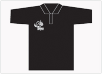 เสื้อคอปกสีดำสกรีนโลโก้สีขาว