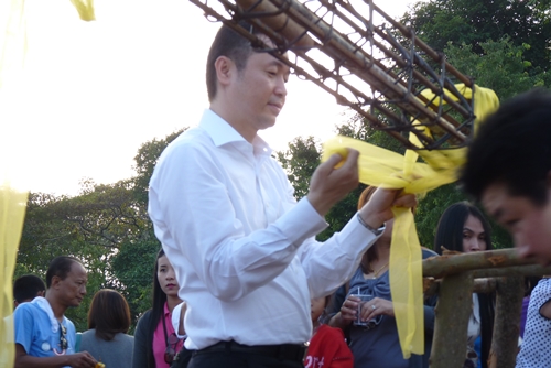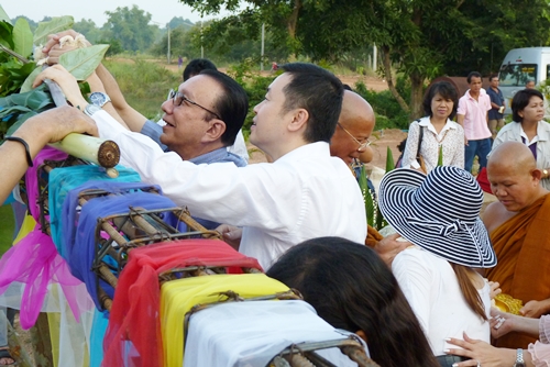ประกอบพิธียกเสาเอกอาคารเฉลิมพระเกียรติ ถวายแม่ของแผ่นดิน ณ วัดป่าหนองโง้ง บ้านโนนศิลา อำเภอโพนพิสัย จังหวัดหนองคาย (23 ตุลาคม 2553)